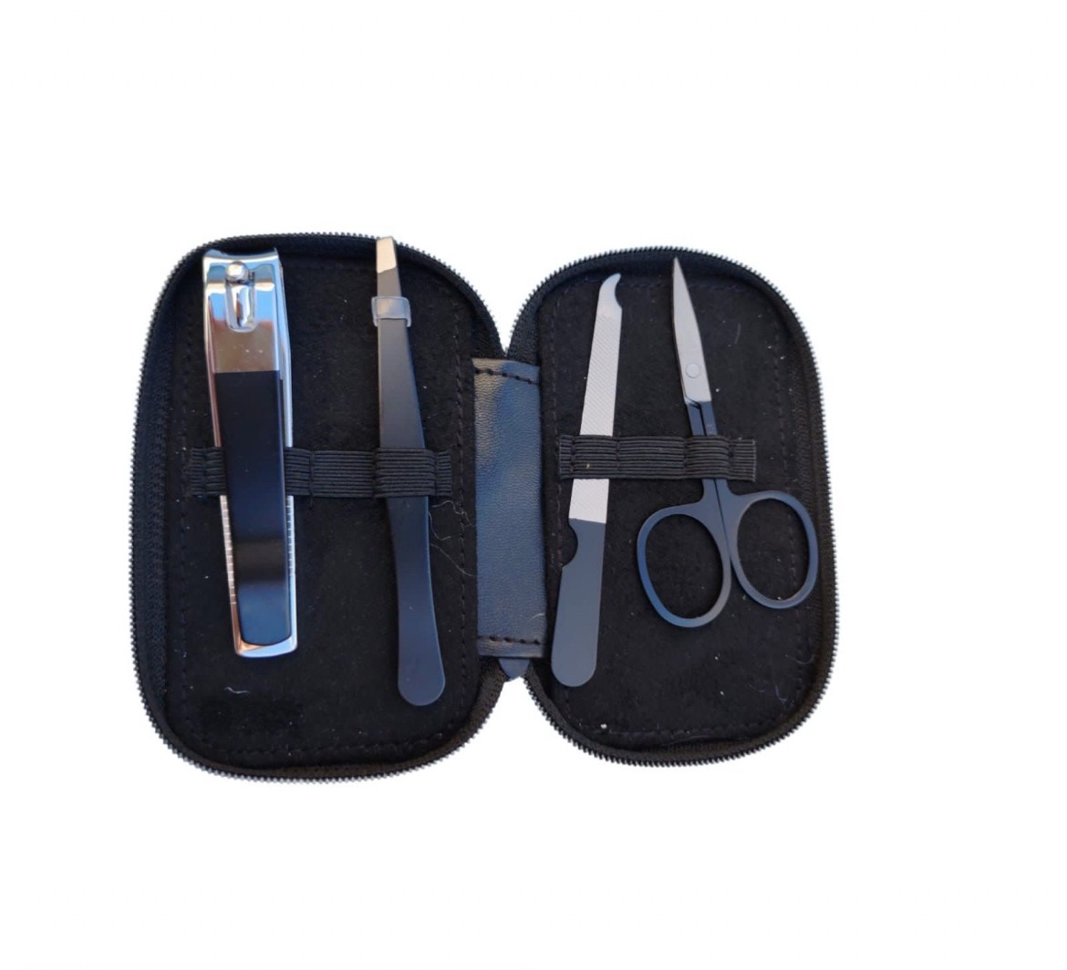 This compact grooming kit includes nail clippers and scissors in a stylish pouch. Perfect for maintaining hygiene throughout your journey.